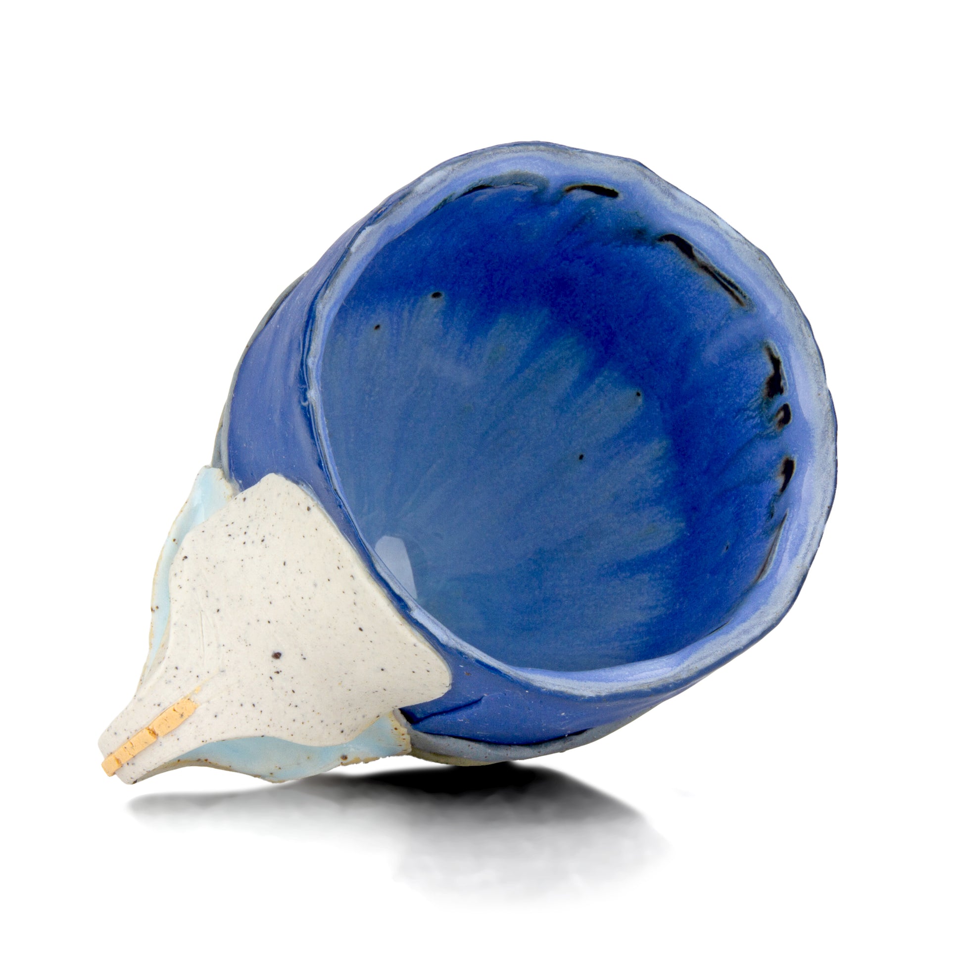 5.5" x 4.5" x 4" - Colored porcelain, wild shale clay, glaze, food, and dishwasher safe.